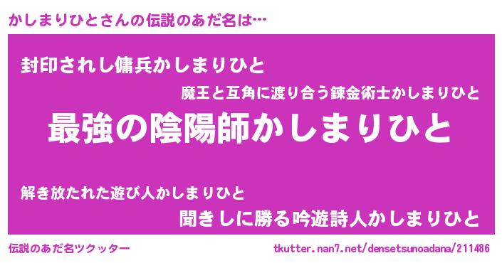 | ファンタジー風あだ名 | 『エターナルカシマリヒトー』 |