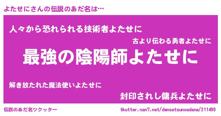 | 意味不明あだ名 | 『住所不定無職よたせに(86歳)』 |