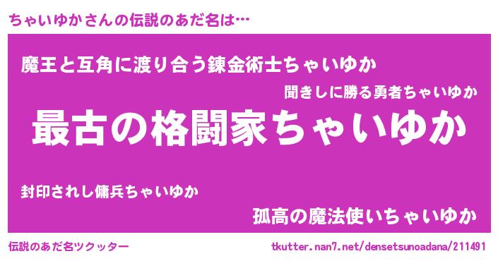 | 欧米人風あだ名 | 『ちゃいゆかクリステル』 |