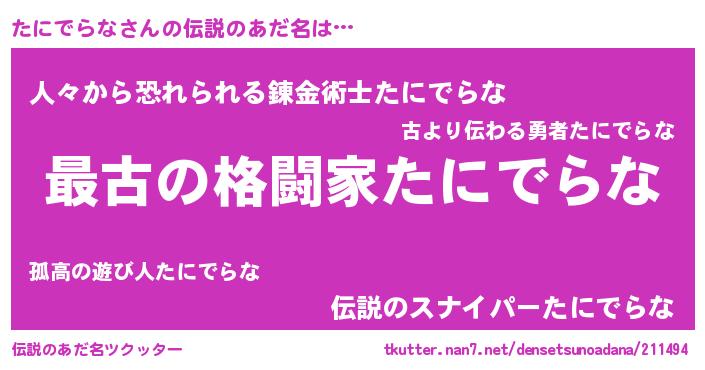 | 意味不明あだ名 | 『たにでらなフォーエバー』 |