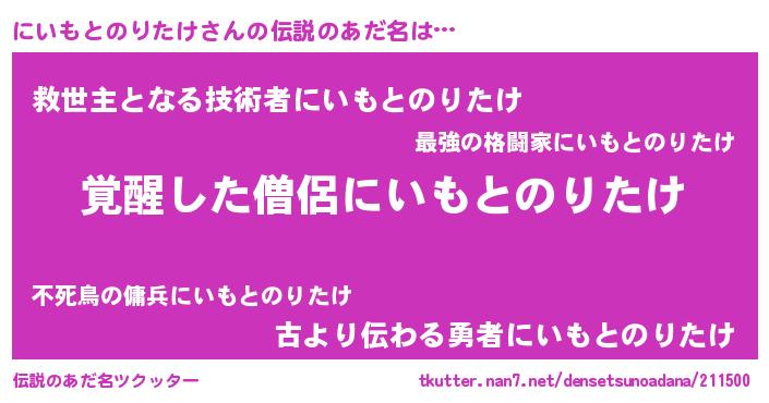 | ポケモン風あだ名 | 『ヒニイモトノリタケ』『ニーイイ』 |