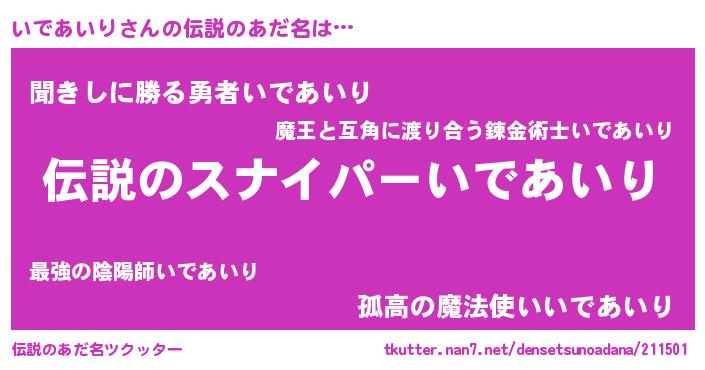 | 女子向けラノベタイトル風あだ名 | 『いであいりなんてお断りですっ。』 |