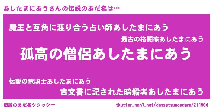 | 胡散臭い通販商品みたいなあだ名 | 『信頼と実績のネックレス…その名も「あしたまにあう」』 |