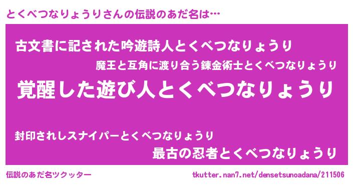 | ヒーロー風カッコイイあだ名 | 『天弓騎士トク』『仮面トクダー』 |