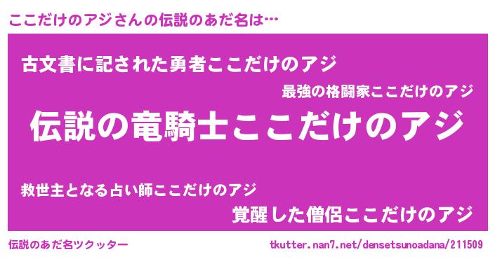 | 男性向けラノベタイトル風あだ名 | 『ここだけのアジの憂鬱』 |