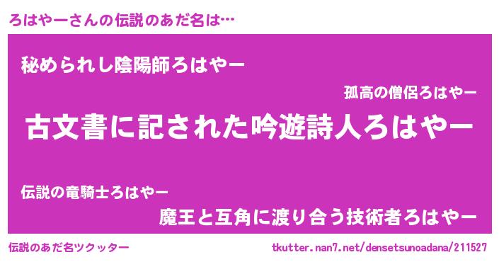 | 意味不明あだ名 | 『永久保存ろはやー』『自称ろはやー』 |