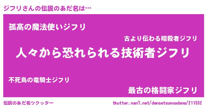 | ヒーロー風カッコイイあだ名 | 『友情の使者ジフリ』『暗黒騎士ジフ』 |