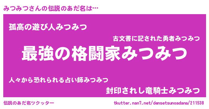 | ヒーロー風カッコイイあだ名 | 『ウルトラみつみつマン』『仮面ミツダー』 |