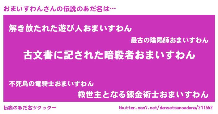 | 胡散臭い通販商品みたいなあだ名 | 『前代未聞の健康食品…その名も「おまいすわん」』 |