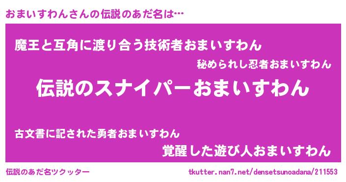 | 欧米人風あだ名 | 『マイケルおまいすわん』 |