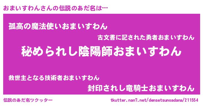 | ファンタジー風あだ名 | 『エターナルオマイスワンー』 |