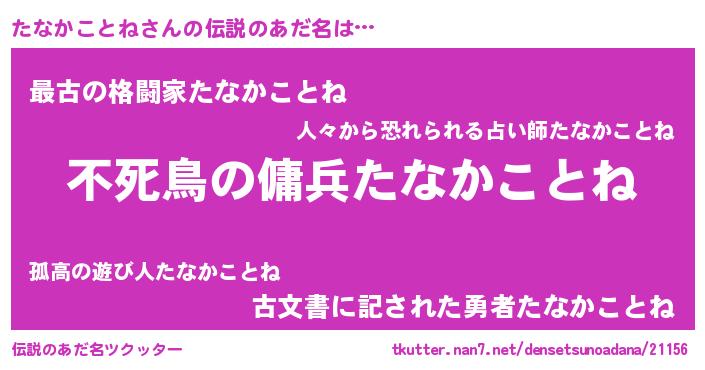 | 女子向けラノベタイトル風あだ名 | 『たなかことね姫と円卓の騎士』 |