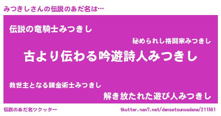 | 女子向けラノベタイトル風あだ名 | 『みつきしの契約王妃』 |