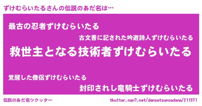 | ヒーロー風カッコイイあだ名 | 『慈愛の使者ずけむらいたる』 |
