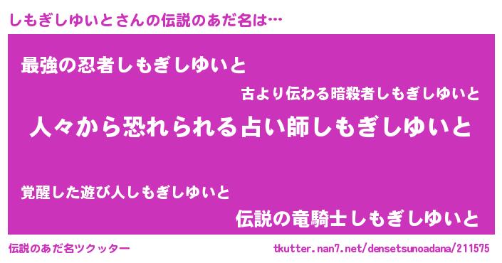 | ヒーロー風カッコイイあだ名 | 『正義の使者しもぎしゆいと』 |