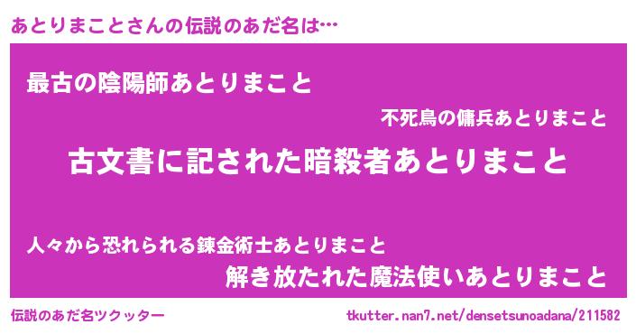 | 意味不明あだ名 | 『永久保存あとりまこと』 |