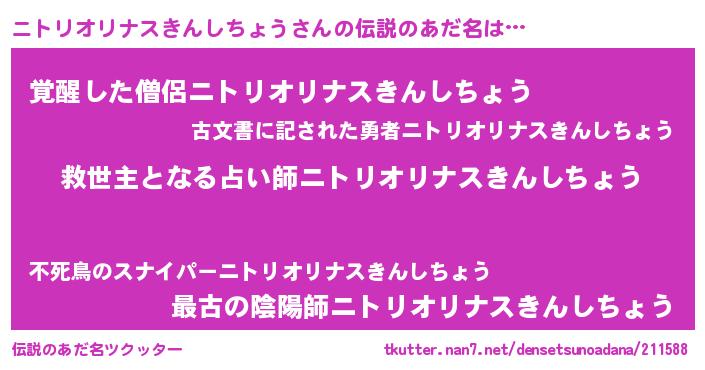 | ヒーロー風カッコイイあだ名 | 『天空の使者ニトリオリナスきんしちょう』 |