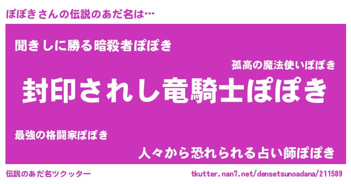 | 意味不明あだ名 | 『住所不定無職ぽぽき(10歳)』 |