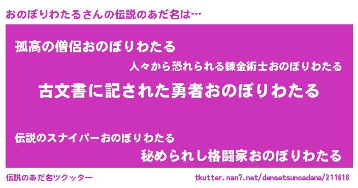 | 意味不明あだ名 | 『永久保存おのぼりわたる』 |