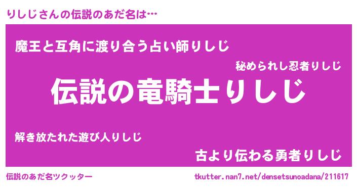 | ヒーロー風カッコイイあだ名 | 『スーパーリシジ』『正義の使者りしじ』 |