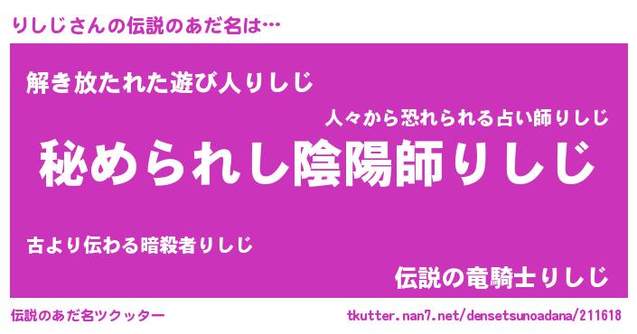 | 意味不明あだ名 | 『りしじフォーエバー』『ペロリンりしじ』 |