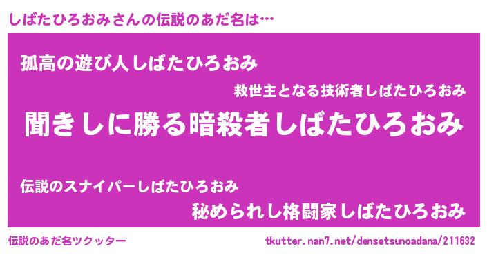 | 男性向けラノベタイトル風あだ名 | 『シバタヒロオミスレイヤー』 |