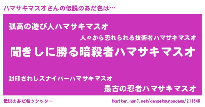 | ヘコむあだ名 | 『ハマサキマスオ(苦笑)』『ハマっちょ』 |