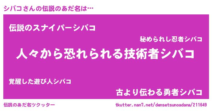 | 意味不明あだ名 | 『眠気覚ましガムシバコ味』『自称シバコ』 |