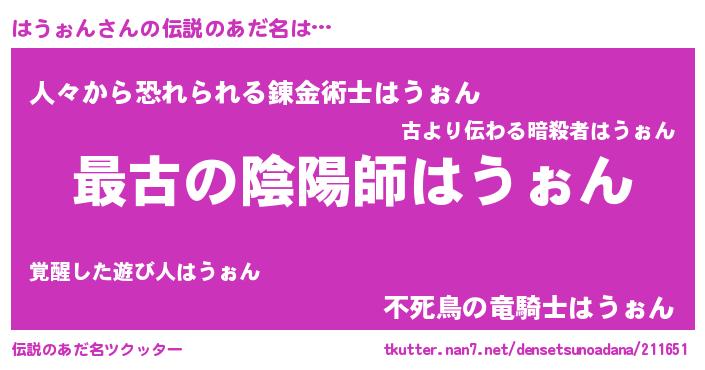 | 意味不明あだ名 | 『自称はうぉん』『はうぉんフォーエバー』 |