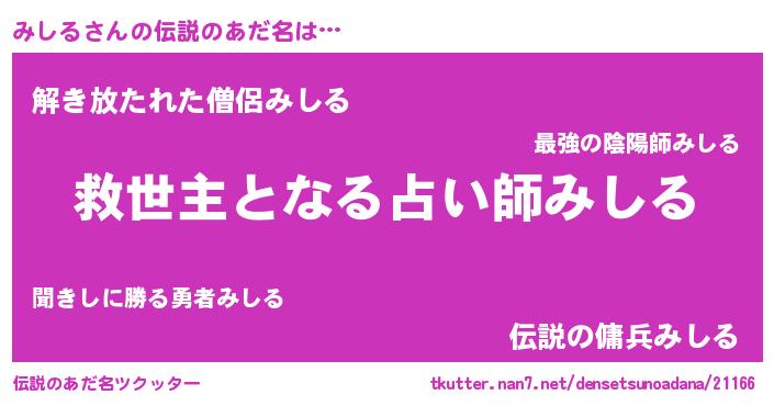 | ヒーロー風カッコイイあだ名 | 『天空の使者みしる』『仮面ミシダー』 |