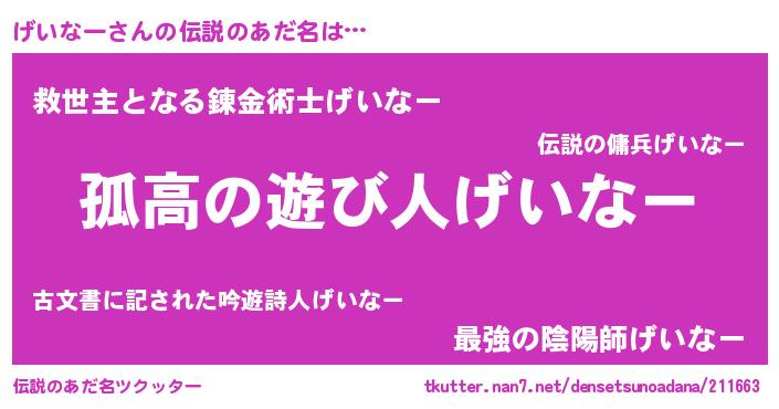 | 女子向けラノベタイトル風あだ名 | 『げいなーは平凡を望む』 |
