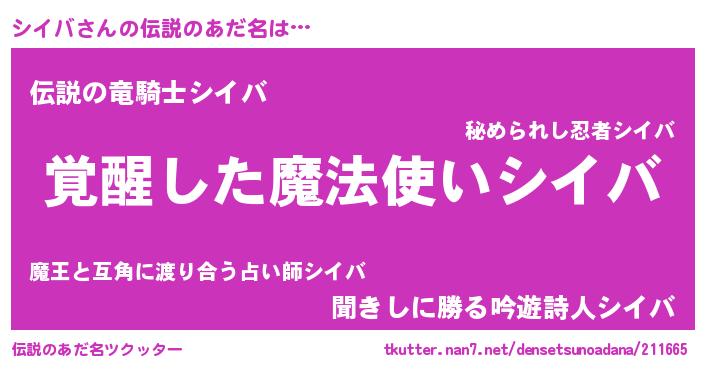 | 男性向けラノベタイトル風あだ名 | 『シイバの嫁は女の子じゃないと思った?』 |