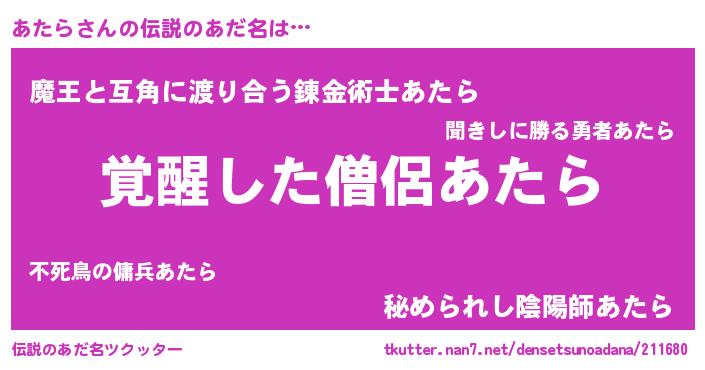 | 意味不明あだ名 | 『自称あたら』『とにかく怪しいあたら』 |