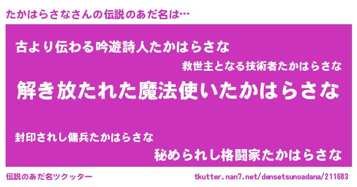| 意味不明あだ名 | 『自称たかはらさな』 |