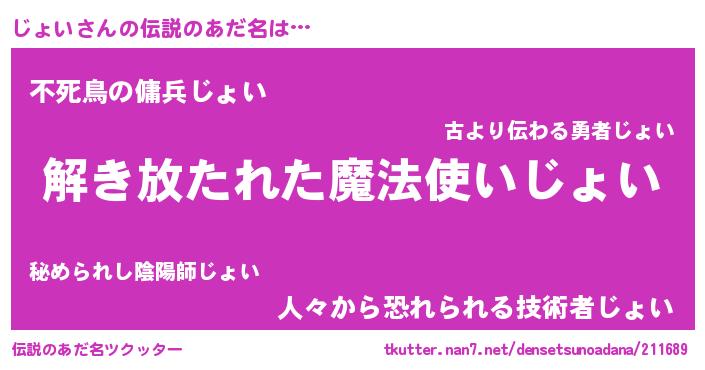 | 意味不明あだ名 | 『とにかく怪しいじょい』『自称じょい』 |