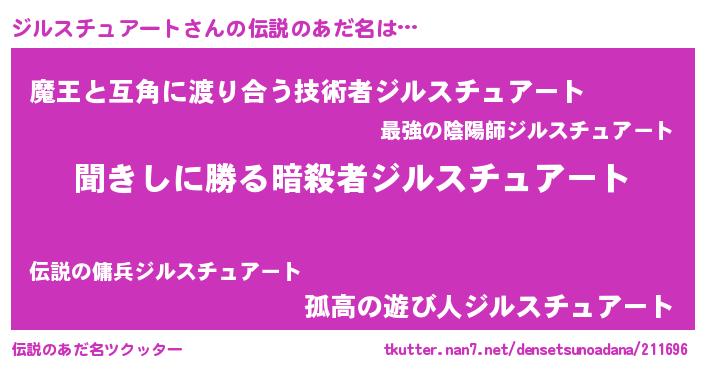| ヒーロー風カッコイイあだ名 | 『ネオジルスチュアート』『幻影騎士ジル』 |