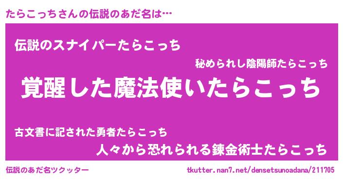 | 意味不明あだ名 | 『とにかく怪しいたらこっち』 |