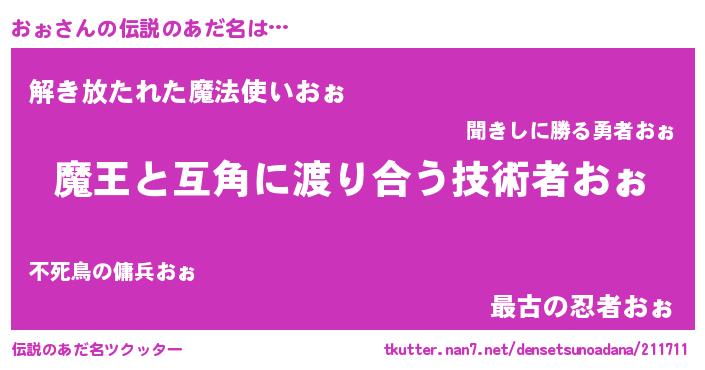 | ヒーロー風カッコイイあだ名 | 『愛の使者おぉ』『銀牙騎士オォ』 |