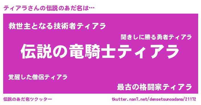| 胡散臭い通販商品みたいなあだ名 | 『必ず成功するブレスレット…その名も「ティアラ」』 |