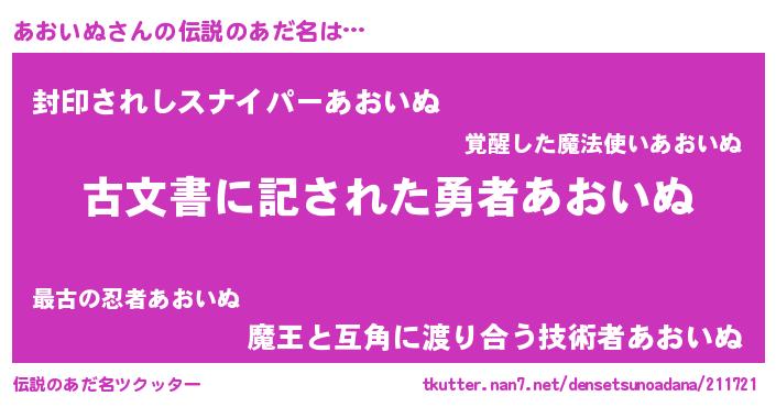 | ヒーロー風カッコイイあだ名 | 『ネオアオイヌ』『スーパーアオイヌ』 |