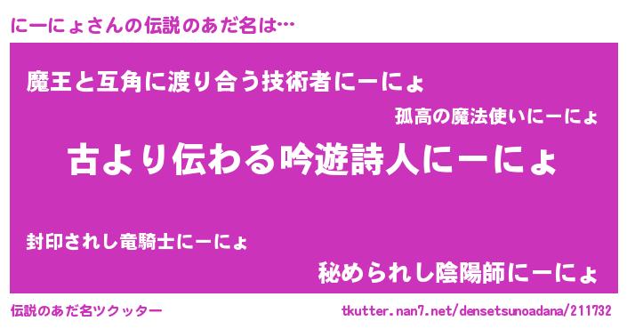 | 料理風あだ名 | 『にーにょごはん』 |