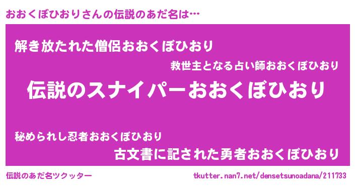 | 男性向けラノベタイトル風あだ名 | 『おおくぼひおりの憂鬱』 |