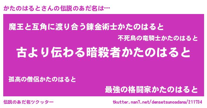 | ヒーロー風カッコイイあだ名 | 『ネオカタノハルト』 |