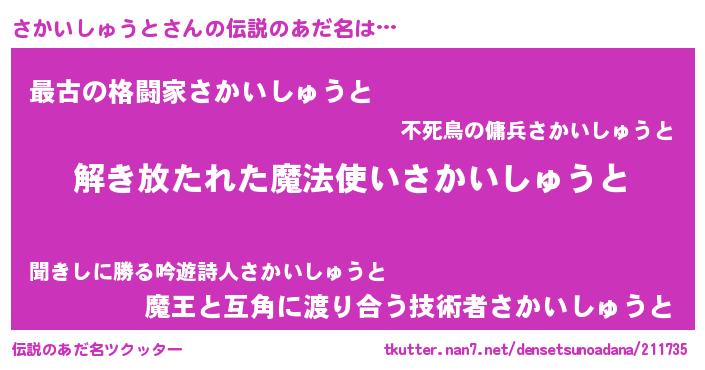 | ヒーロー風カッコイイあだ名 | 『仮面サカダー』『幻影騎士サカ』 |