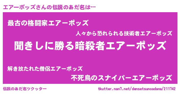 | 胡散臭い通販商品みたいなあだ名 | 『絶対に幸福をもたらす健康食品…その名も「エアーポッズ」』 |