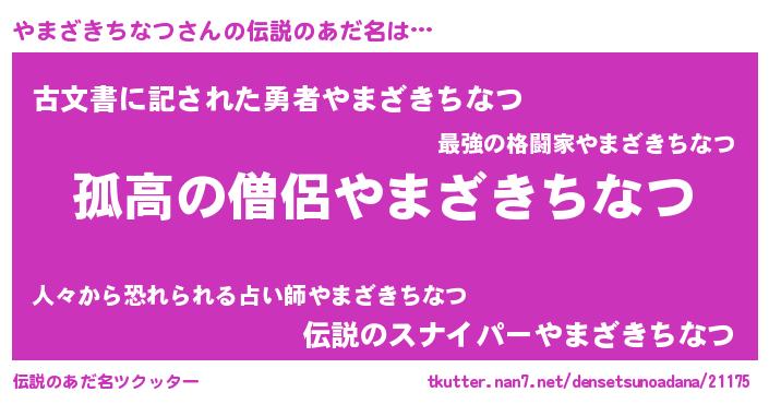 | 意味不明あだ名 | 『住所不定無職やまざきちなつ(14歳)』 |