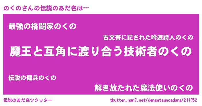 | 意味不明あだ名 | 『自称のくの』『住所不定無職のくの(1歳)』 |