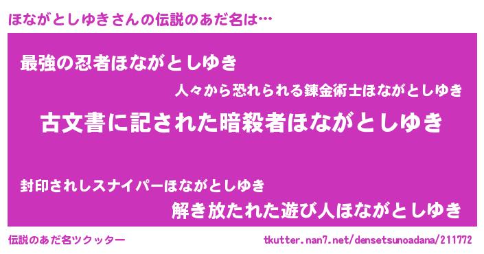 | 意味不明あだ名 | 『自称ほながとしゆき』 |
