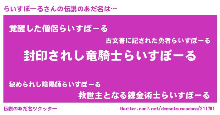 | ヘコむあだ名 | 『らいにー』『らいお』『酢こんぶ』 |