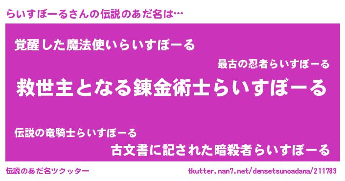 | 意味不明あだ名 | 『住所不定無職らいすぼーる(91歳)』 |